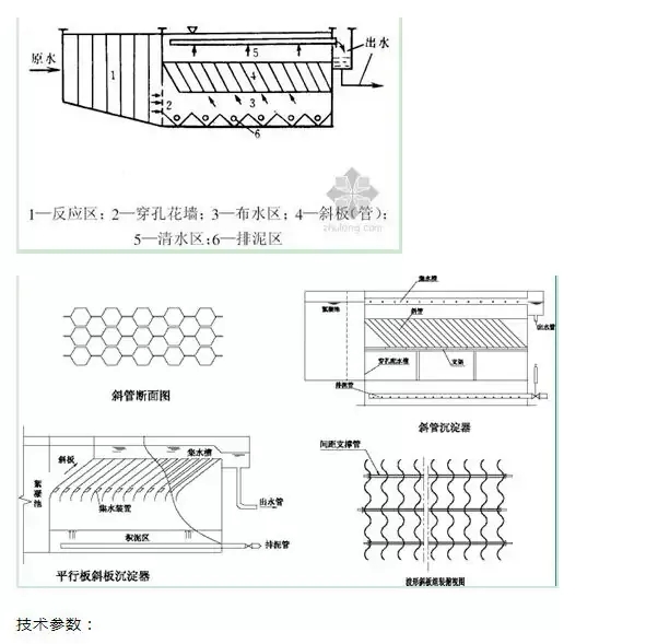 6、当斜管长度为一米时,有效负荷按2~8m3/m2设计。
